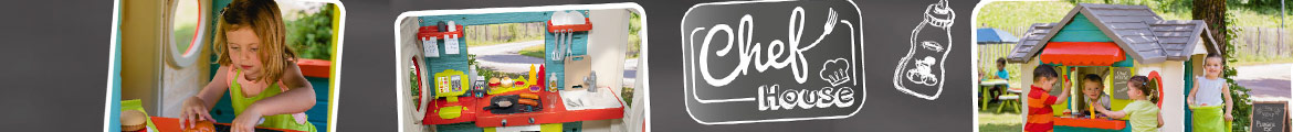 Domek z grillem i ławeczką wyposażony jest w kominek oraz wbudowany na werandzie grill. Dzięki ławeczce maluchy będą mogły poczuć się jak na prawdziwym patio, zajadając przepysznie przygotowane potrawy. Dodatkowo przygotowany został kran..