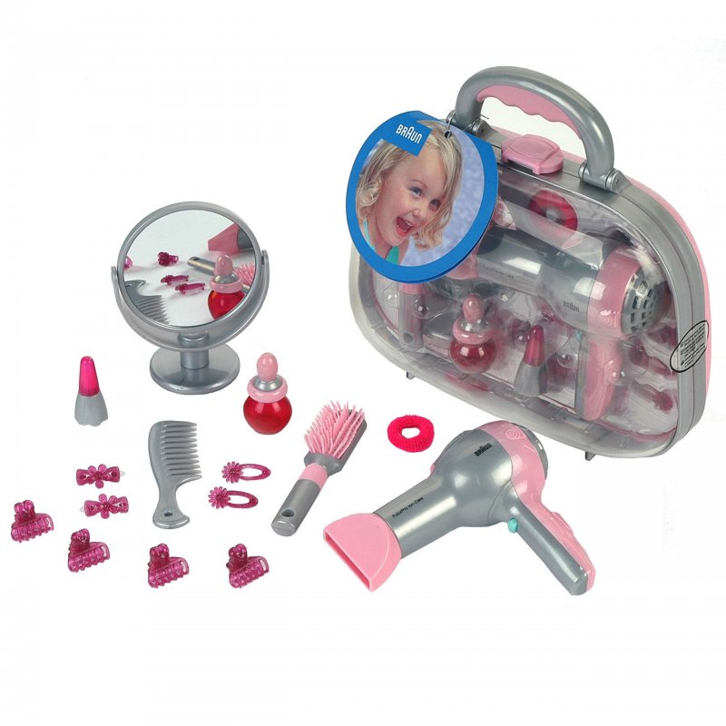 Walizka fryzjerska na licencji Braun stworzona przez bardzo cenioną firmę Klein, która z myślą o dzieciach uwielbiających wcielać się w rolę dorosłych projektuje wysokiej jakości zabawki imitujące sprzęty AGD, narzędzia, kosmetyki itp.