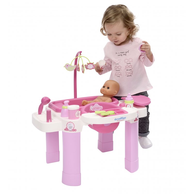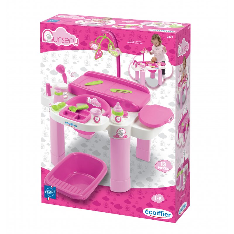 Kącik Opiekunka z serii Nursery dla dzieci od 12 miesiąca to świetne rozwiązanie dla maluchów naśladujących zachowania dorosłych. W zestawie znajdziemy wszystko co potrzebne aby dziecko mogło opiekować się ukochaną lalka lub misiem.