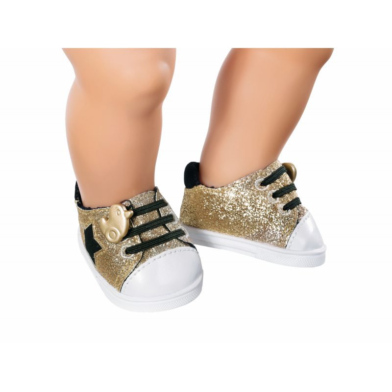 W tych odlotowych, połyskujących trampkach, BABY born® będzie świetnie się bawić. Para bucików w stylu glamour jest ozdobiona czarnymi detalami i doskonale pasuje do sportowej, casualowej, a nawet wieczorowej stylizacji twojej laleczki.