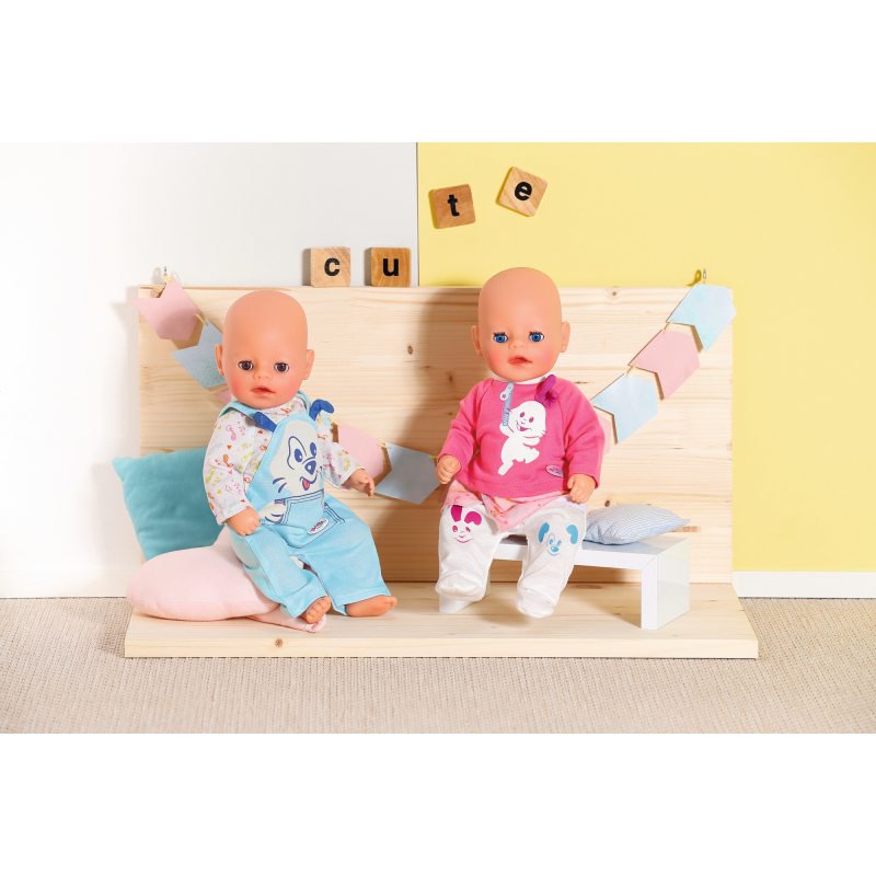 Słodkie ubranko dla lalki 36 cm. BABY born wygląda niezwykle uroczo w słodkim ubranku z motywem króliczków. Ubranko przeznaczone dla lalek do 36 cm wysokości. Dostępne w dwóch wariantach kolorystycznych (sprzedawane oddzielnie w zależności od dostępności). Zestaw nie zawiera lalki.