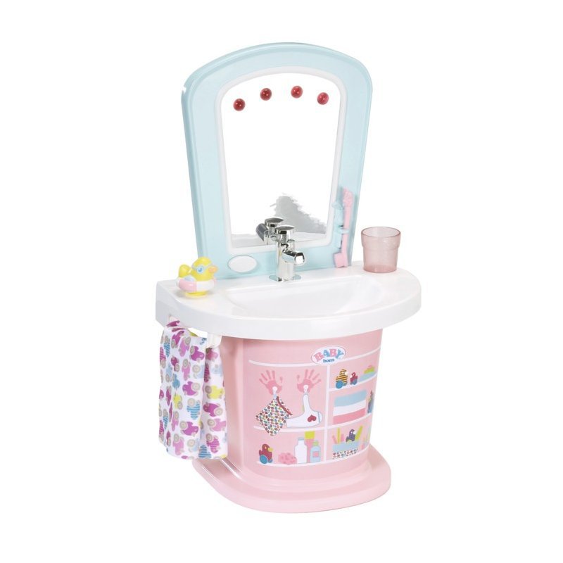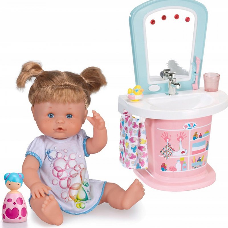 Toaletka interaktywna dla lalki Baby born 43 cm. Umywalka z pompką do obiegu wody w zestawie z lalka 30 cm Fabryka Baniek Nenuco
