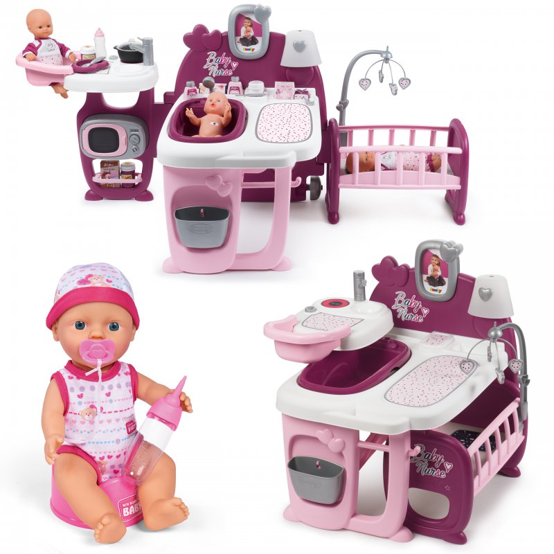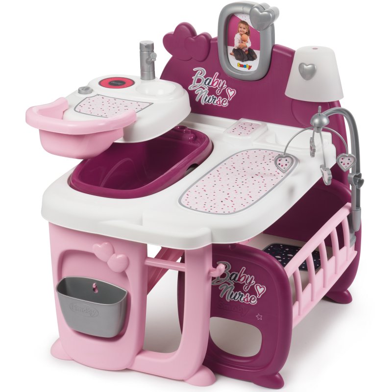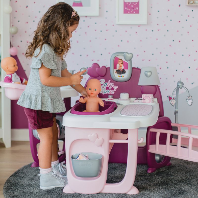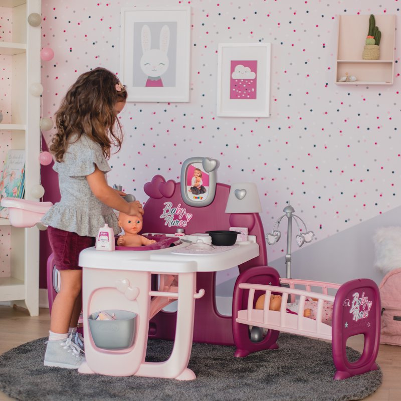Centrum opiekunki z kołyską duży zestaw przeznaczony dla lalki 42 cm renomowanego francuskiego producenta zabawek dla dzieci firmy Smoby. Kącik tematyczny z serii Baby Nurse do przedszkola lub dla małej opiekunki od lat 3.