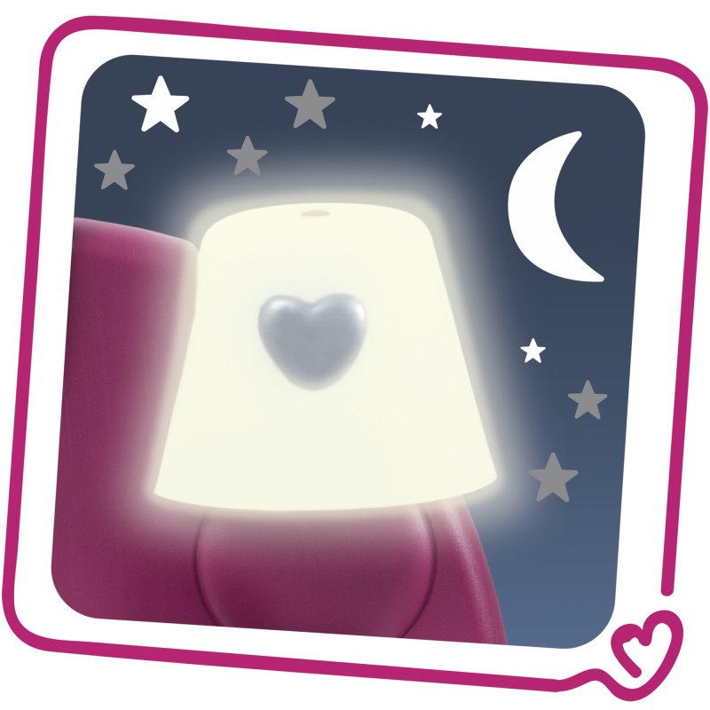 Łazienka została wyposażona w wanienkę i przewijak oraz półeczkami na przybory. W kuchni znajdziemy krzesełko do karmienia, kuchenkę, zlew z kranem oraz półeczkami. Sypialnia z kołyską, szafą na ubrania na wieszakach oraz lampkę. Akcesoria: miseczka w kształcie serca z łyżeczką, garnek, butelka, kosmetyki, artykuły spożywcze, w sumie 16 akcesoriów. Proste przechowywanie i składanie w wózek na dwóch kółkach.