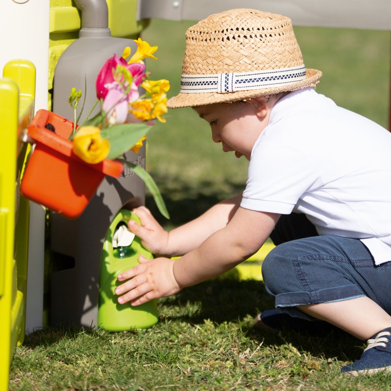 Ogródek do domku dla dzieci Smoby Neo Jura, dzięki któremu można hodować I podlewać kwiaty.