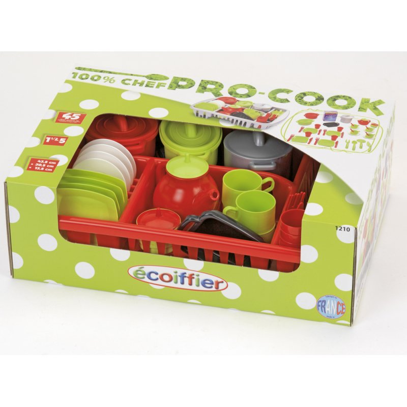 Wśród zabawek firmy Ecoiffier, jednego z największych producentów zabawek w Europie, znajdują się m.in. kolorowe zestawy "kuchenno-spożywcze" dla młodszych dzieci, - tym razem zestaw naczyń z suszarką. Naczynia z suszarką ProCook to fantastyczny zestaw kolorowych naczyń kuchennych pasujący praktycznie do każdej kuchni. Dzięki nim każda mała gospodyni będzie mogła podawać przepyszne dania na przyjęciach swoich lal i misiaków.
