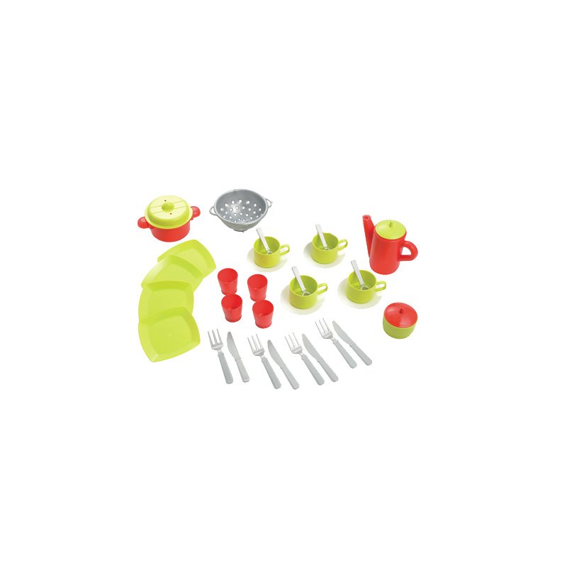 Wspaniały zestaw obiadowy marki Ecoiffier, należącej do francuskiej firmy Smoby posiada akcesoria niezbędne w każdej kuchni. Oprócz talerzyków i kubeczków są również sztućce, garnuszki, miseczki, dzbanuszek i wiele innych - łącznie 35 elementów. Żywe kolory przyciągają uwagę. Produkty umieszczone zostały w obszernej plastikowej torbie zasuwanej suwakiem, co bardzo ułatwia utrzymanie porządku i przechowywanie elementów zestawu. Zabawa w dom rozwija i kształtuje wyobraźnię oraz zdolności manualne.