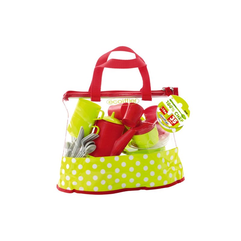 Zestaw naczyń obiadowych w torbie od firmy Smoby Ecoiffier, cenionego producenta zabawek dla dzieci, będzie stanowił idealne uzupełnienie każdej kuchni.