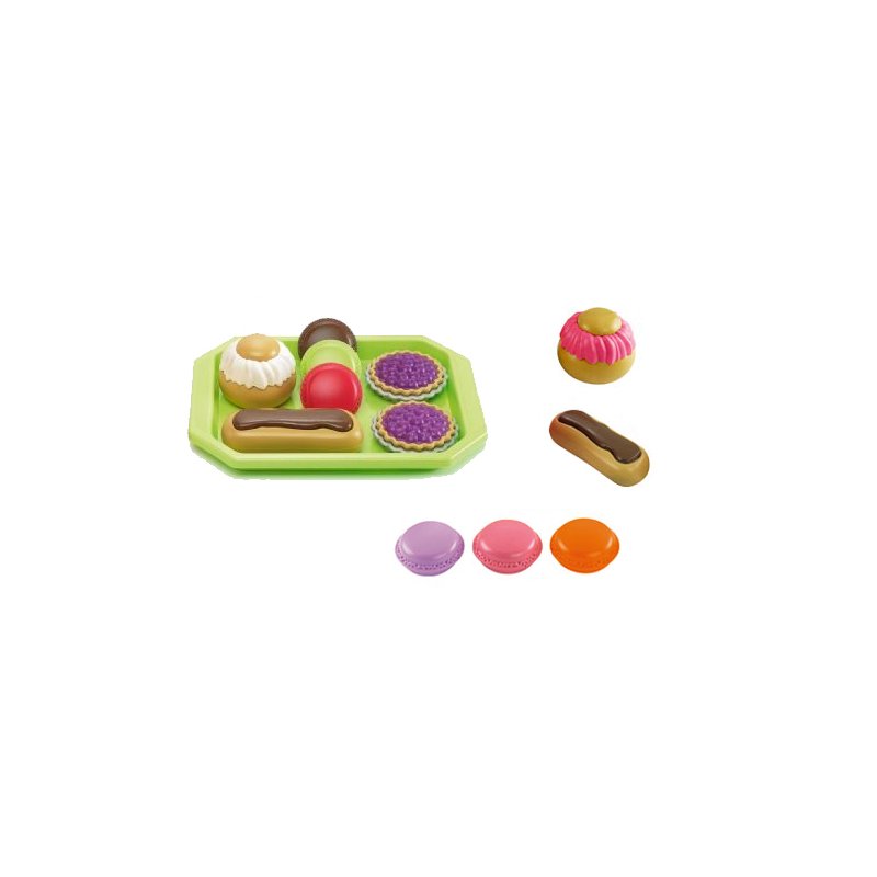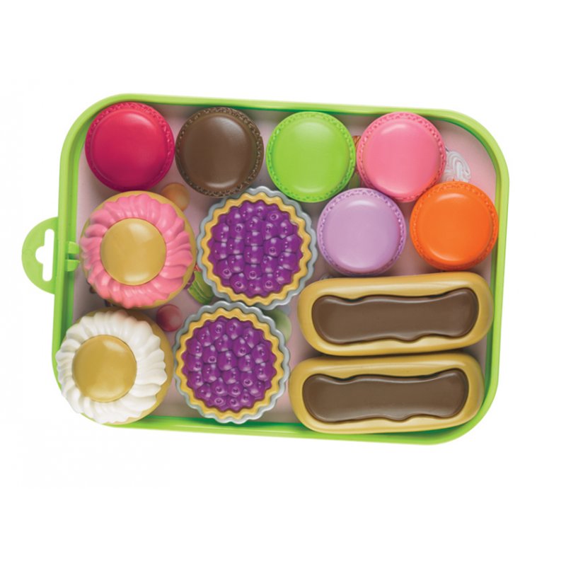 Taca z ciastkami cenionej francuskiej firmy Ecoiffier. W zestawie 17 elementów, niezbędny dodatek do wyposażenia kącika tematycznego w przedszkolu lub dodatek do kuchenki dla dziecka.