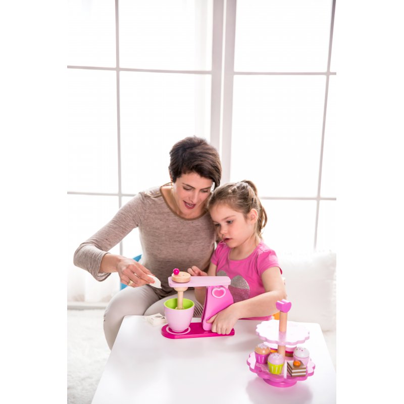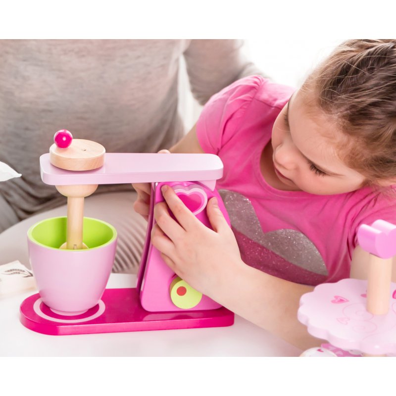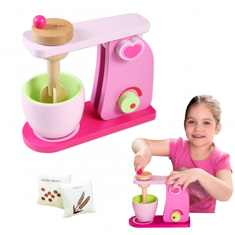 Jeśli Twoje dziecko lubi pomagać w kuchni i fascynuje go świat kuchennych sprzętów z pewnością polubi tą zabawkę. Drewniany mikser to produkt charakteryzujący się wysoką estetyką wykonania, trwałością i troską o bezpieczeństwo dziecka, które pomimo chęci nie powinno obsługiwać prawdziwego miksera.