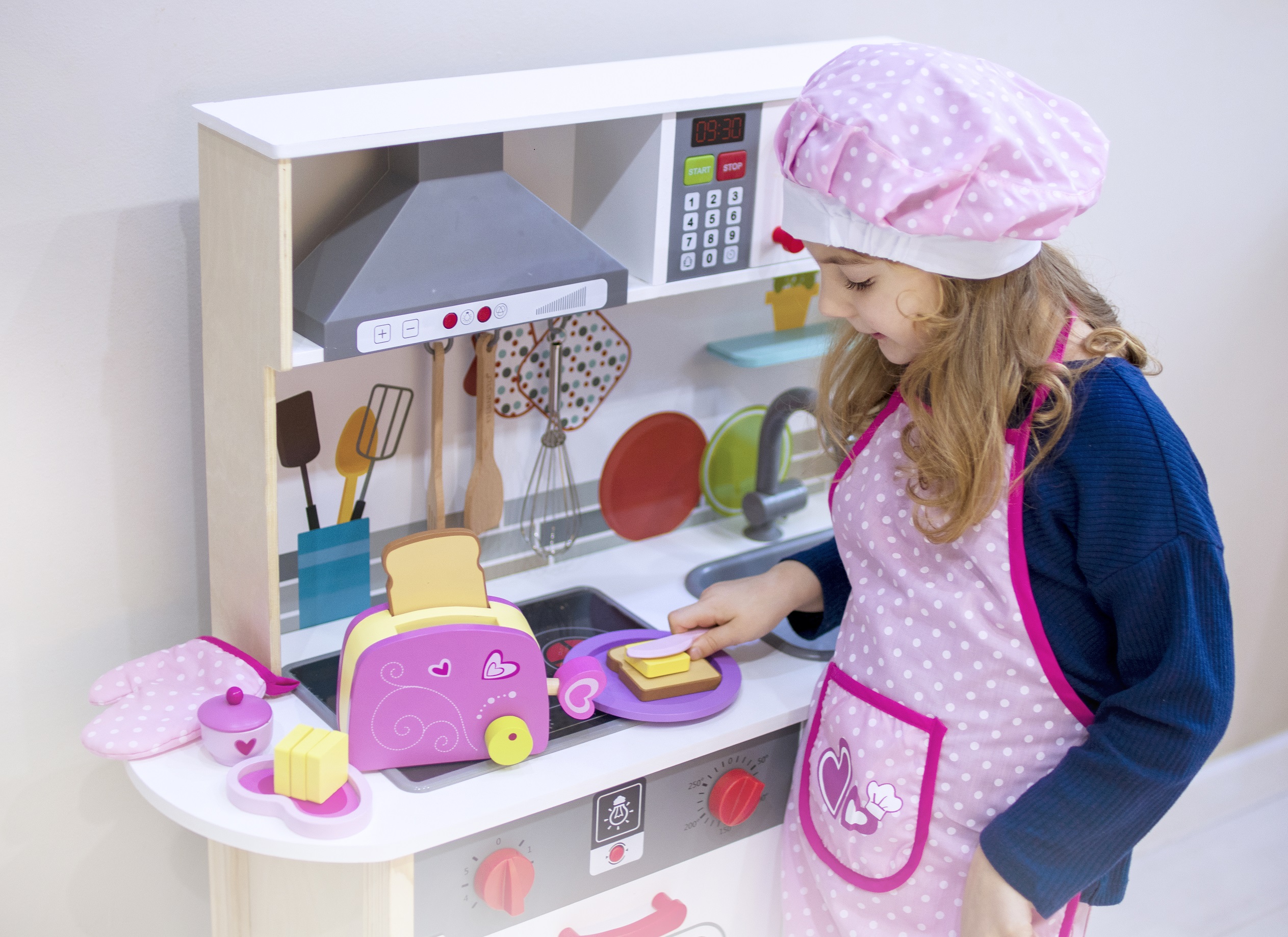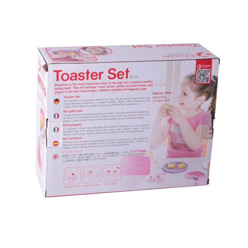Super zestaw małego kucharza od Classic World. Uroczy różowy fartuszek wraz z zestawem śniadaniowym z tosterem.