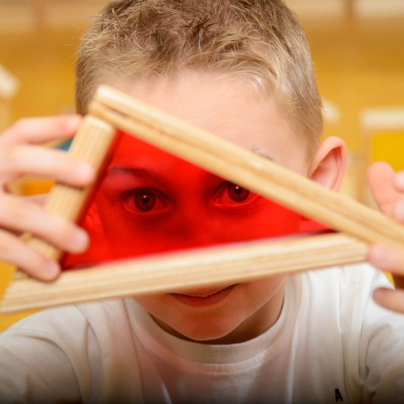 Domek Z Luster to świetna zabawka sensoryczna, dzięki której dziecko ma możliwość różne odbicia w wielu lustrach. Przedmioty umieszczone w domku można obejrzeć na setki sposoby, korzystając z ustawionych wokół lusterek. Dzięki temu dziecko uczy się właściwości fizycznych światła i tym samym odbić obrazu.