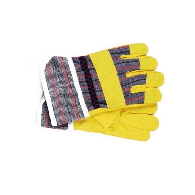 Te rękawice robocze są w kolorze żółtym z kontrastującymi, szarymi elementami. W przegubach rękawic znajduje się gumka, która pozwala rękawicom utrzymać się na dziecięcych rączkach. Rękawice te są w rozmiarze uniwersalnym, ponieważ jako rękawice robocze muszą być nieco luźniejsze.