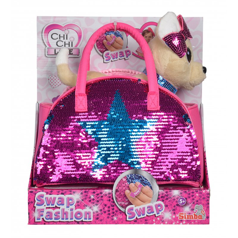 Zabawka zawiera maskotę pieska Chi Chi Chihuahua, z cekinową kokardką i obróżką oraz torebkę w której właścicielka może przenosić swojego pupila. Torebka jest w kolorze różowym. Po jednej stronie pokryta została cekinami w kolorze niebieskim i różowym, które tworzą wzór gwiazdki. Przejeżdżając ręką w górę i w dół możemy odwracać kolory cekinów.