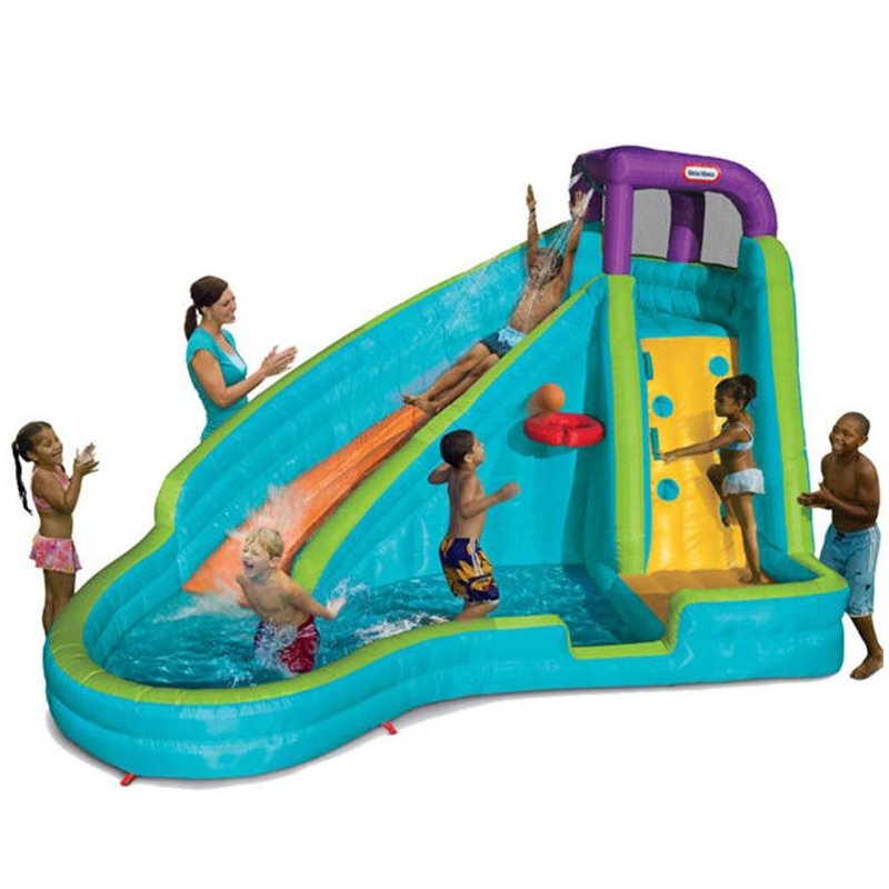 Jeśli chodzi o dmuchańce to tylko Little Tikes! Najwyższej jakości ogromny nadmuchiwany Wodny Plac zabaw Slam 'n' Curve Slide ze zjeżdżalnią i ścianką wspinaczkową pozwala dzieciom skakać, wspinać się oraz ślizgać się na zakrzywionej zjeżdżalni. Wysokie siatkowe ścianki otaczają przestrzeń przeznaczoną do skakania zapewniając bezpieczeństwo. Podczas zabawy na dmuchańcu wymagana jest stała praca dmuchawy wtłaczającej powietrze. Na dmuchanym placu zabaw ze zjeżdżalnią może bawić się jednocześnie trójka dzieci. Dmuchaniec napełnia się powietrzem w zaledwie kilka minut i równie szybko się składa, zajmując przy tym niewiele miejsca co ułatwia przechowywanie.