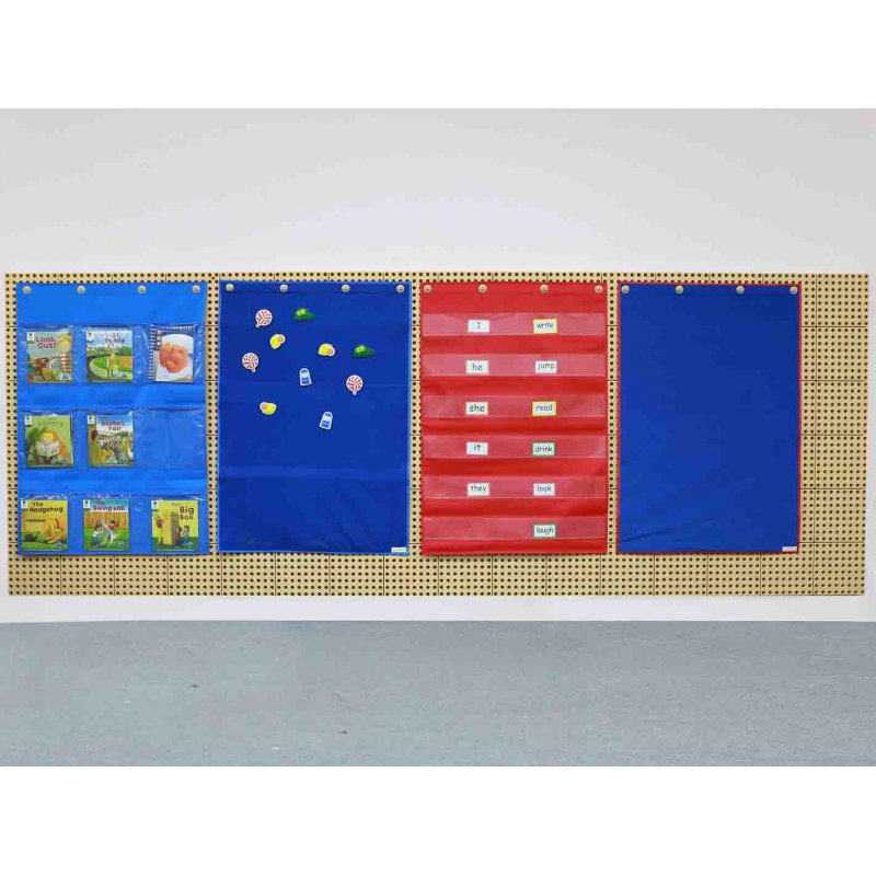 Materiałowy arkusz firmy Masterkidz, zawierający 3 rzędy kieszonek na książki, lub obrazki. Świetnie sprawdza się w warunkach szkolnych, gdzie można go wykorzystać do objaśniania trudnych zagadnień. Nada się również jako ciekawy mebel, który będzie eksponował wartościowy tytuły - na przykład w bibliotece.