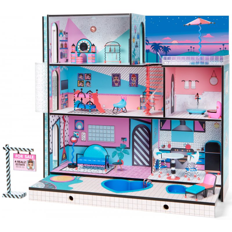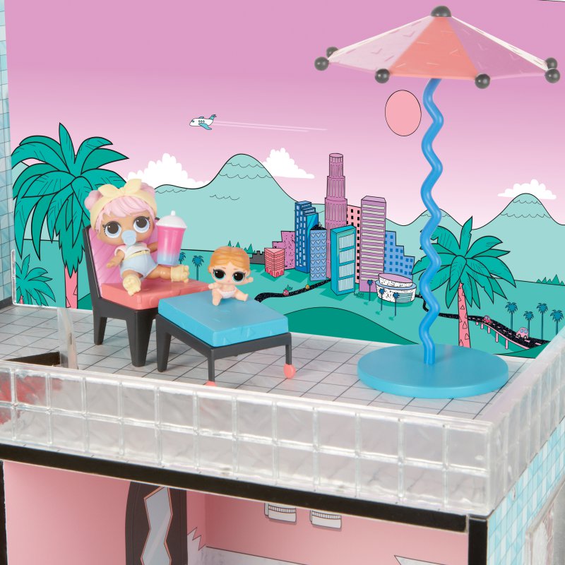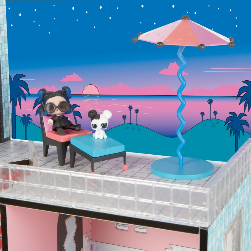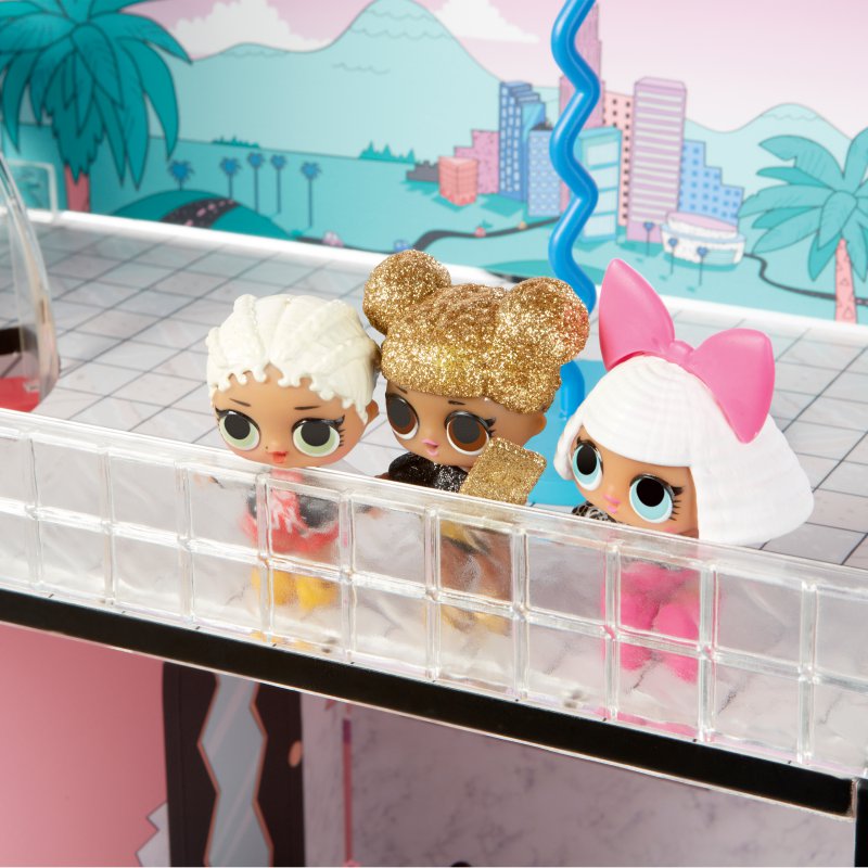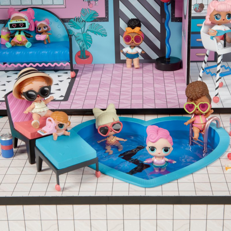 Domek L.O.L. Surprise! jest najlepszym miejscem dla laleczek. Trzypiętrowy domek posiada działającą windę, efekty świetlne i dźwiękowe, prawdziwy basen, spa i piaskownicę! Domek L.O.L. to niezbędne uzupełnienie kolekcji laleczek Surprise.