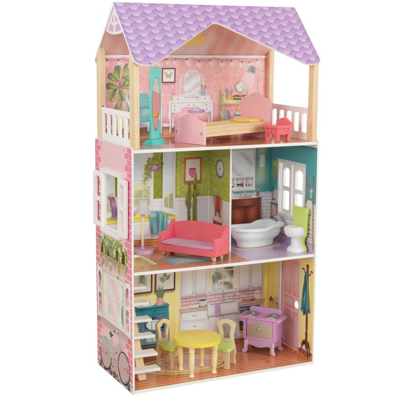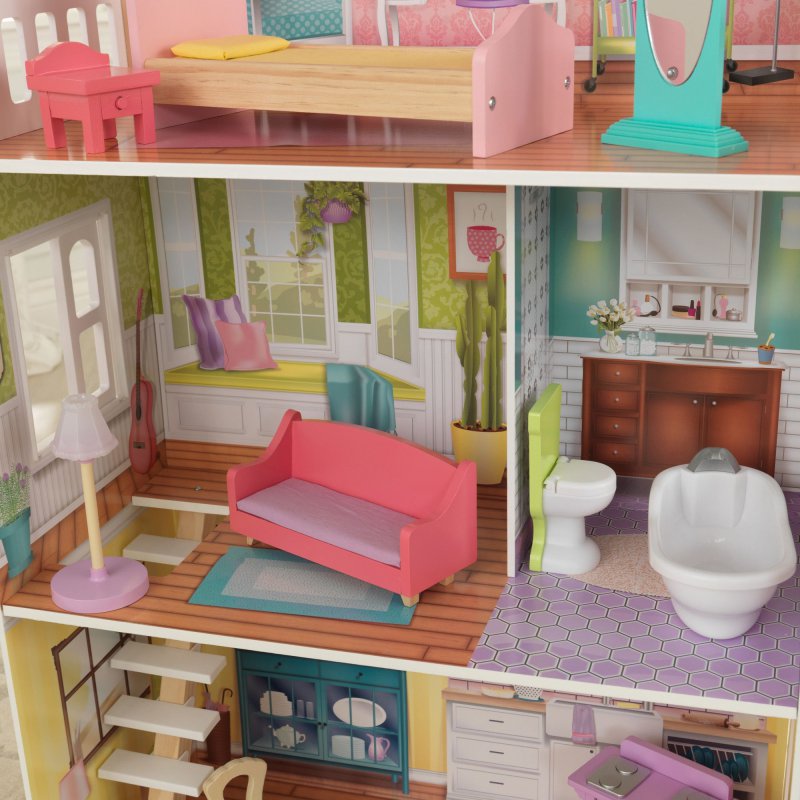 Domki dla lalek amerykańskiej firmy Kidkraft wykonane są z najwyższej jakości drewna, są bardzo starannie wykończone oraz poddane odpowiedniej obróbce, tak, aby spełniały najwyższe wymogi bezpieczeństwa. Piękna stylistyka, bogactwo kolorów i sprzętów zapewnią wyjątkową i fascynującą zabawę każdemu dziecku.