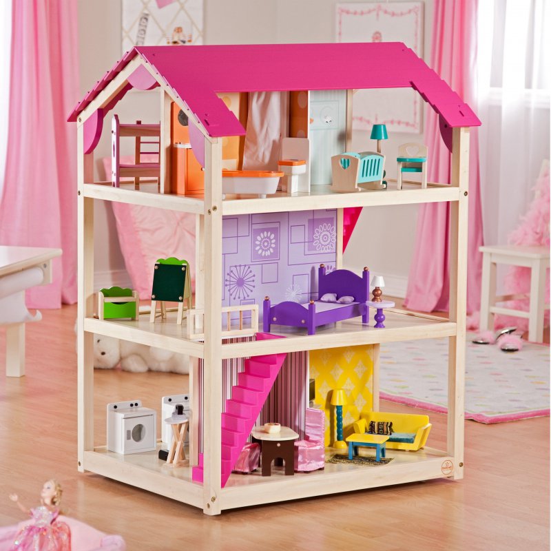 Drewniany domek dla lalek Poppy to wymarzony prezent dla każdej małej dziewczynki. Ten piękny trzypiętrowy drewniany domek dla lalek jest w pełni wyposażony oraz posiada duże przestrzenne pomieszczenia, w których bez przerwy można przestawiać piękne drewniane mebelki i akcesoria.