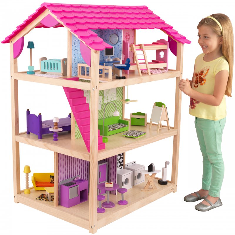 Domki dla lalek amerykańskiej firmy Kidkraft wykonane są z najwyższej jakości drewna, są bardzo starannie wykończone oraz poddane odpowiedniej obróbce, tak, aby spełniały najwyższe wymogi bezpieczeństwa. Piękna stylistyka, bogactwo kolorów i sprzętów zapewnią wyjątkową i fascynującą zabawę każdemu dziecku.