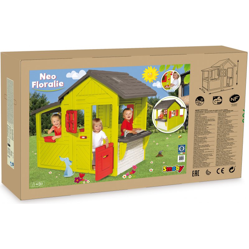 Niewątpliwym atutem domku jest łatwość montażu oraz stabilność. Wysoka jakość tworzyw i materiałów użytych do jego wykonania gwarantuje bezpieczną zabawę na długie lata. Tworzywo, z którego wykonano domek jest całkowicie odporne na działanie czynników atmosferycznych i pokryte powłoką anty UV zapewniającą trwałość kolorów i zapobiegającą ich blaknięciu na słońcu. To całkowicie bezpieczna zabawka, nadająca się do użytku tak na zewnątrz (ogród, działka itd.) jak i w domowym wnętrzu. Domek Wyprodukowano we Francji dbając o wysoki poziom jakości, kreatywności i optymalnego wykończenia.