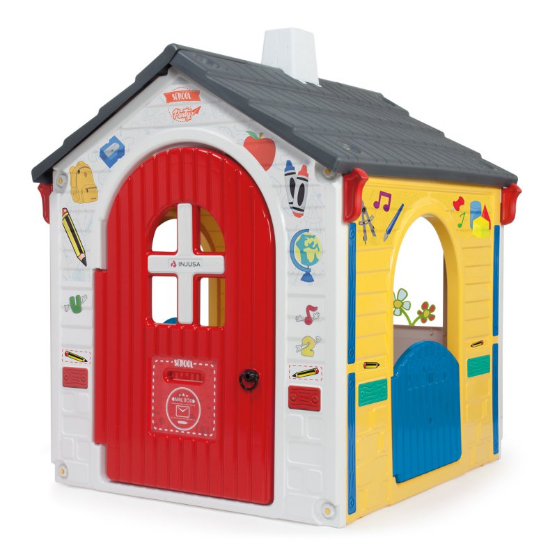 Domek ogrodowy School House renomowanej hiszpańskiej marki Injusa doskonale nadaje się do użytku zarówno w domu jak i na świeżym powietrzu. Wysoka jakość wykonania z powłoką anty UV gwarantuje odporność na działanie warunków atmosferycznych. Domek wyposażony jest w drzwi frontowe z otworem na listy, dwie pary bocznych drzwi i w doniczkę z kwiatkami. Zaokrąglone krawędzie zapewnią bezpieczeństwo.