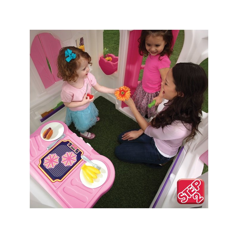 Domek z podłogą amerykańskiej firmy STEP2 jest idealny do zabawy przez cały rok, zarówno w domu jak i w ogrodzie. Nowinką w jego konstrukcji jest podłoga, która znacznie ułatwia utrzymanie domku w czystości.