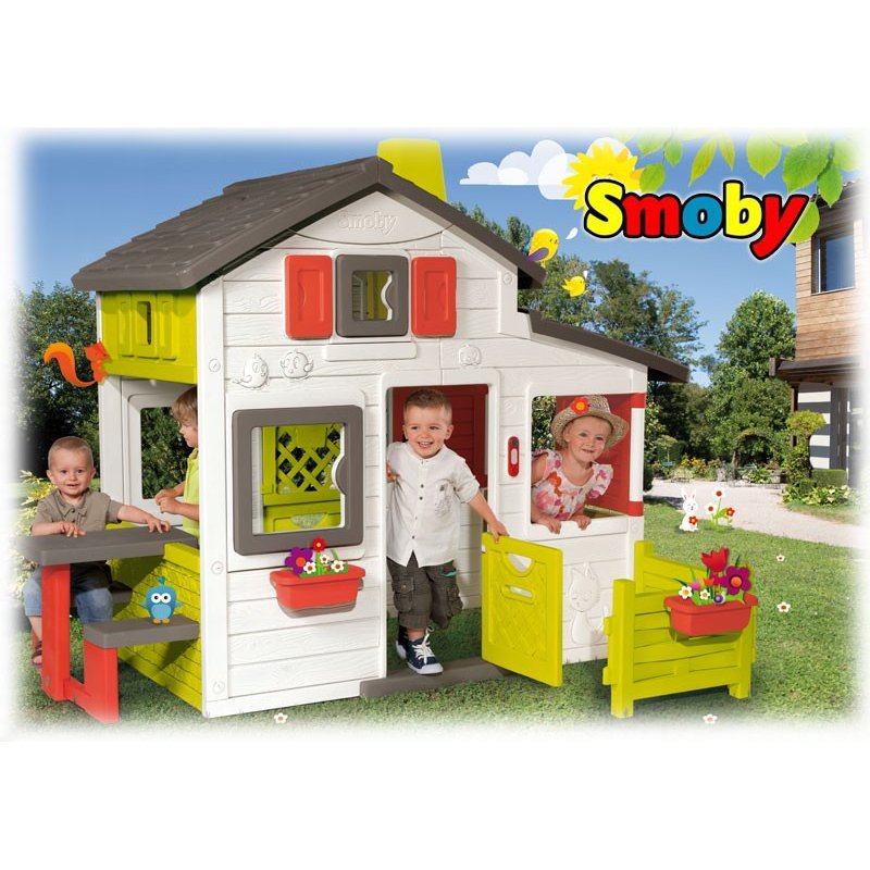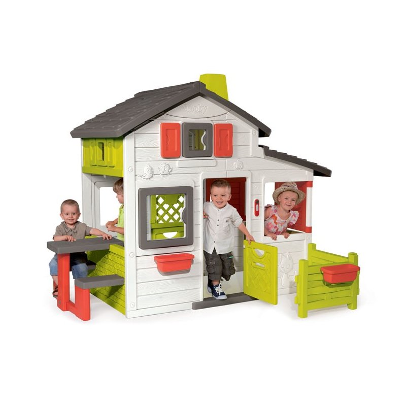Przepiękny, funkcjonalny domek Friends House ze stolikiem i ogródkiem zachęca dzieci do zabawy. Domek ma otwierane okna i drzwi, jest wyposażony w doniczki, w których można sadzić kwiaty. Domek jest wyposażony w stolik z ławeczkami. Jest możliwość zamontowania stolika zarówno wewnątrz domku jak i na zewnątrz.