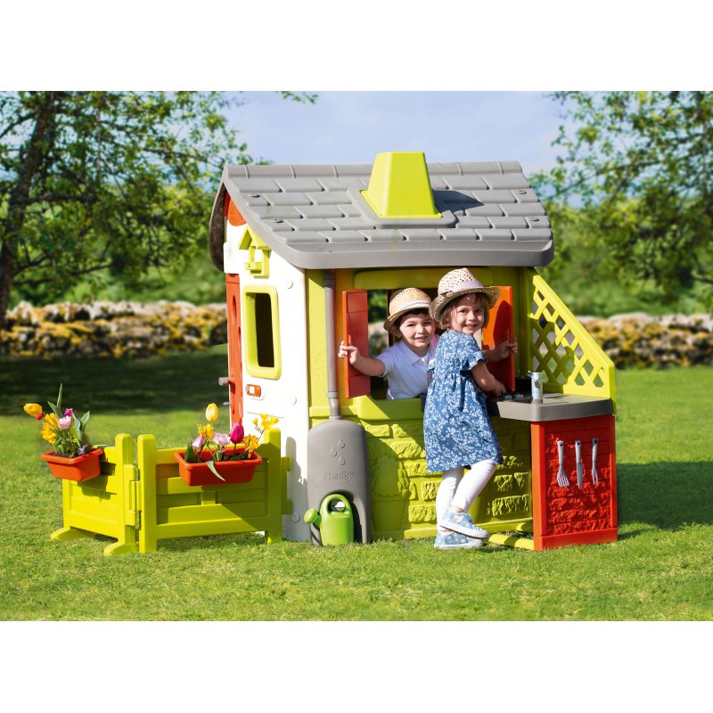 Smoby Domek Ogrodowy Friends Floralie funkcjonalny domek Friends House ze stolikiem i ogródkiem zachęca dzieci do zabawy. Domek ma otwierane okna i drzwi, jest wyposażony w doniczki..