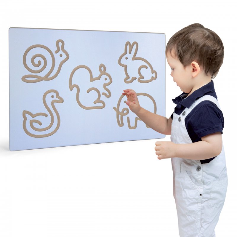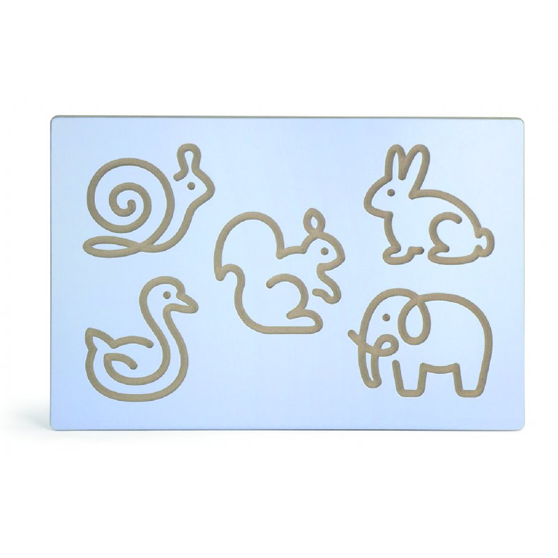 Szablon do nałożenia na tablicę do rysowania firmy Viga Toys. Dzięki niemu dziecko może nauczyć się kształtów zwierząt, oraz rysowania ich. Może poćwiczyć na tablicy i doskonalić swoją zręczność i koordynację rączek, a następnie przenieść zdobyte umiejętności na papier.
