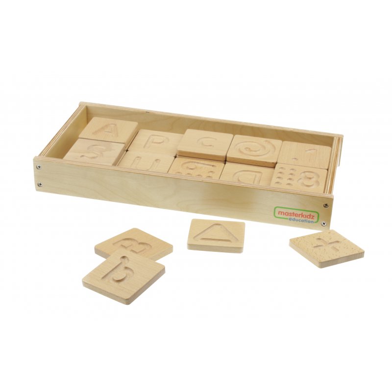 Zabawka sensoryczna edukacyjna, zestaw 40 drewnianych płytek z wygrawerowanymi symbolami. Na płytkach znajdują się literki, cyfry, oraz figury. Zadaniem dziecka jest odgadnięcie co jest na płytce, nie patrząc na nią. Należy kierować się wyłącznie dotykiem. Zadanie nie jest proste, ale działa świetnie jako utrwalenie liter i cyferek.