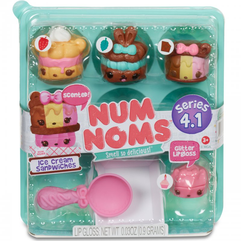 Witaj w świecie Num Nomsów! Jaki jest przepis na absolutnie fantastyczną zabawę? Czego potrzeba, by stworzyć niezwykłą fuzję doznań zapachowych? Filiżanka słodyczy, łyżeczka zaskoczenia – tak powstają zabawne Num Nomsy. Łącz Numsy i Nomsy i twórz najbardziej zaskakujące efekty smakowe, wizualne i zapachowe! Num Nomsy to kolekcja uroczych stworków. Każdy z nich ma apetyczny, śliczny zapach. Część to wielobarwne, słodkie nakładki, inne kryją w sobie błyszczyki do ust, pieczątki, albo poruszają się samodzielnie na kółeczkach. Zabawa to nie tylko kolekcjonowanie. Buźki, którymi obdarzono Num Nomsy inspirują do tworzenia historyjek, budowania scenek. Te niezwykłe stworki podbiją serca dzieci i sprawią, że nabiorą apetytu na zabawę!