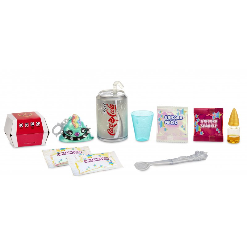 Poopsie Slime Surprise Poop Packs Seria 3.1A to zestaw który skrywa w sobie 10 magicznych niespodzianek do stworzenia glutków - slime'ów - kupek jednorożca. Zainspirowany został zestawem Happy Meal, popularnej restauracji. Dzięki zawartym połyskującym dodatkom i brokatowi, można zmieniać wygląd slime'a. W zestawie znajduje się także zawieszka w kształcie kupki, w której można przechowywać glutka i zabrać go ze sobą.