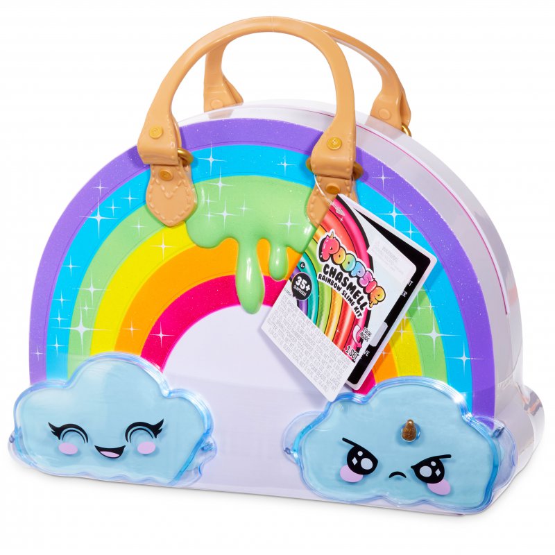 Poopsie Surprise - Kuferek z akcesoriami do tworzenia Slime - Chasmell Rainbow to wyjątkowy, zestaw do kreatywnej zabawy, który zachwyci dzieci! Urocze opakowanie tworzy kuferek w kształcie tęczy, ozdobiony pięknymi kolorami i chmurkami. Walizeczka skrywa mnóstwo akcesoriów do zabawy z masą slime. Dzieci mogą komponować elastyczne, żelowe substancje w pięknych tęczowych kolorach i mieszać je z dołączonymi dodatkami w postaci drobinek połyskującego brokatu lub drobnych kuleczek, dzięki czemu z załączonych elementów powstaną najróżniejsze, unikatowe slime'y. Zestaw zawiera ponad 35 magicznych niespodzianek do zabawy w tworzenie wielobarwnych kupek jednorożca. Elastyczny Slime Surprise po zmieszaniu z dodatkami ma wyjątkowy wygląd. By masa zachowała świeżość, należy przechowywać ją w dołączonych pojemniczkach, co sprawia, że nadaje się ona do wielokrotnego formowania. Zabawa slime jest niezwykle popularna. Pobudza wyobraźnię, wycisza i przede wszystkim daje mnóstwo radości.