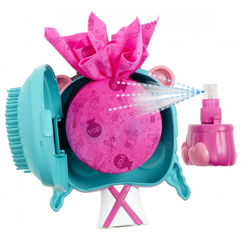 Pop Pop Hair Surprise to trzy fantastyczne niespodzianki w jednym zestawie! Urocze, kolekcjonerskie laleczki posiadają z tyłu prawdziwą szczotkę do włosów, której można używać do stylizacji wielobarwnych włosków lalek i ich pupilków. Uchwyt szczotki po przekręceniu zamienia się w spray, przy użyciu którego dziewczynki odkryją kolejną niespodziankę! Wystarczy spryskać zawiniątko, a ze środka wyłoni się wałek do włosów - Hair Roller z zabawną buźką. Gdy go otworzysz, znajdziesz urocze zwierzątko Pop z bajecznie kolorowymi i długimi włoskami. Ten pupilek może pełnić trzy funkcje - gumki do włosów dla dziewczynek (dzięki czemu ich fryzurki i kolorowe pasemka zachwycą całe otoczenie!), nakładki na ołówek albo, po zamknięciu go w głowie lalki i wypuszczeniu włosów - fryzury lali do zabawy i stylizacji. W zestawie ponadto dzieci znajdą spineczki i gumki do włosów, przy pomocy których będą mogły dowolnie układać, zapinać, wiązać włoski swoich Pop Pop Surprise! Cała kolekcja to aż 8 lalek - Grzebyków Pop, 13 pupilków, 6 Wałków - Hair Rollerów (3 w stylu codziennym, 2 w stylu rzadkim, 1 w stylu ultra rzadkim), 22 kolory włosów, 6 rodzajów włosów (kręcone, proste, dwukolorowe, ombre, pasemka, tęczowe) - a wszystko to w najrozmaitszych konfiguracjach!