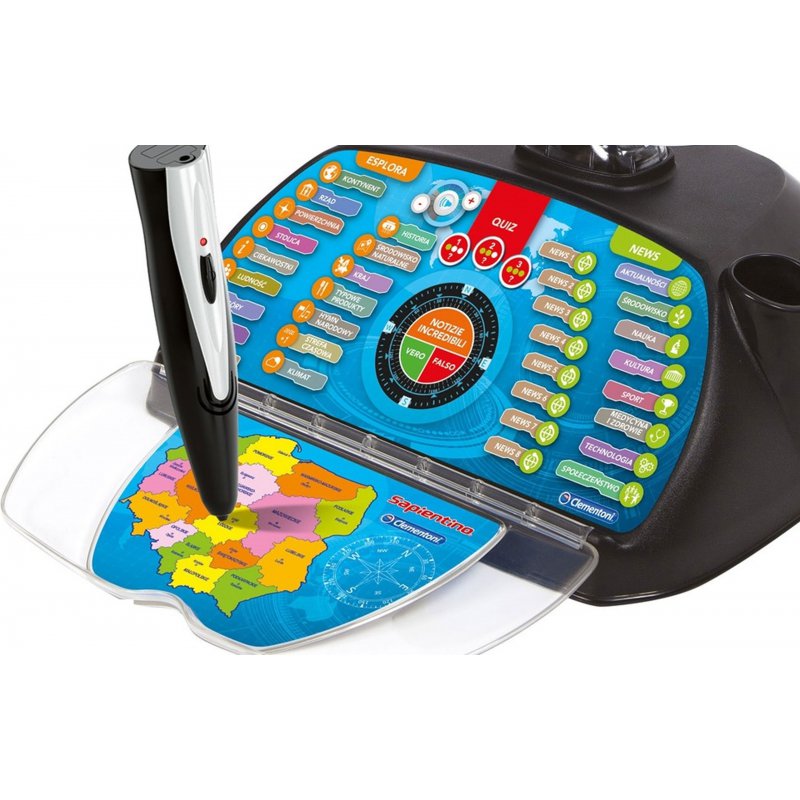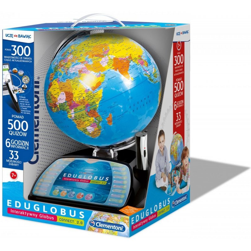Eduglobus - Interaktywny Globus dla dzieci z optycznym czujnikiem w kształcie pióra, zaprojektowany przez renomowanego producenta zabawek, włoską firmę Clementoni.