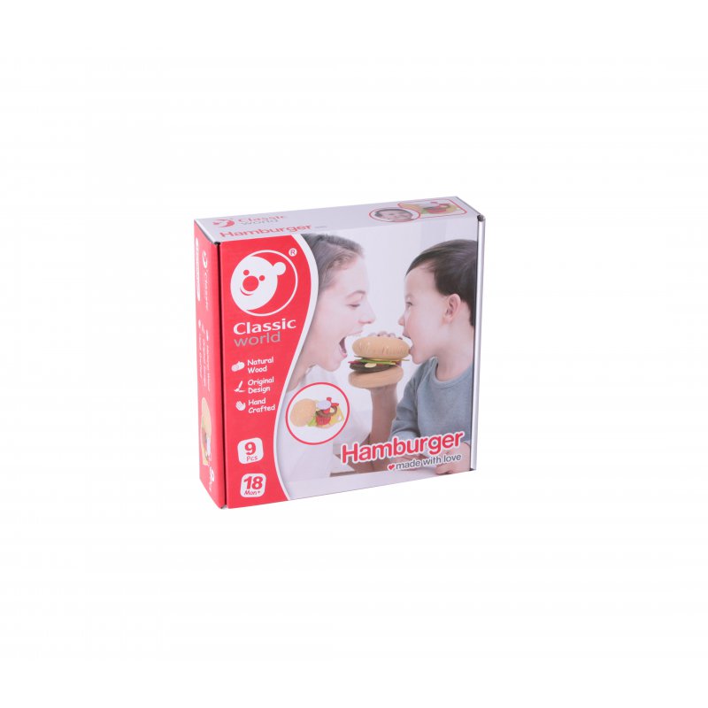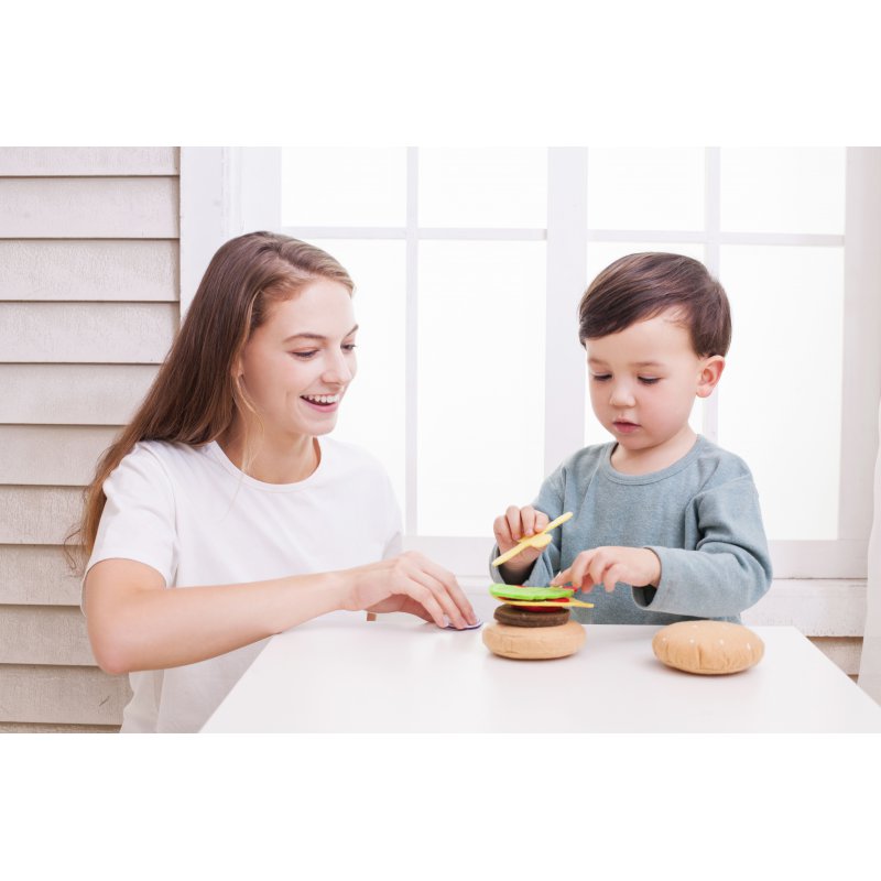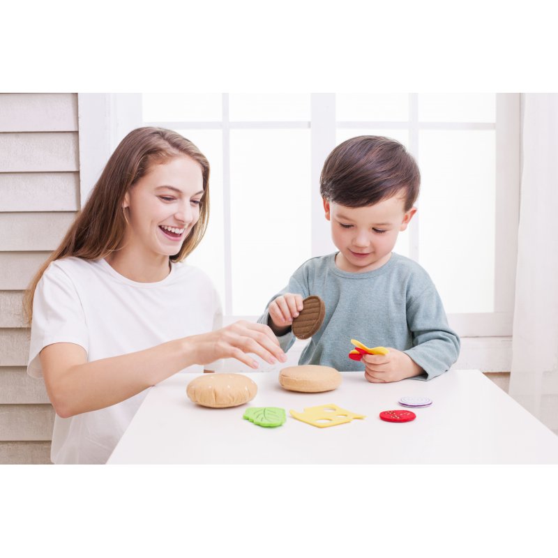 Zestaw do przygotowywania hamburgera to świetny pomysł dla prezent dla małego kucharza. Gadżet umożliwia komponowanie własnych propozycji hamburgerów i kanapek. Dzięki takiej zabawce dziecko może naśladować dorosłych i ich sposób przygotowywania posiłków. Zabawka świetnie nadaje się również do zabawy w grupie, ponieważ uczy wspólnego przygotowywania i spożywania posiłków. To świetny zestaw do komponowania własnych dań i nawiązywania bliskich interakcji z przyjaciółmi i członkami rodziny. W skład zestawu wchodzi bułka, liść sałaty, plaster sera, plasterek pomidora, krążek cebulki oraz oczywiście wołowy burger.