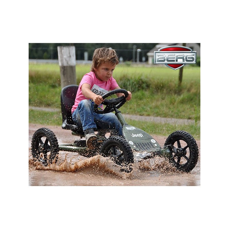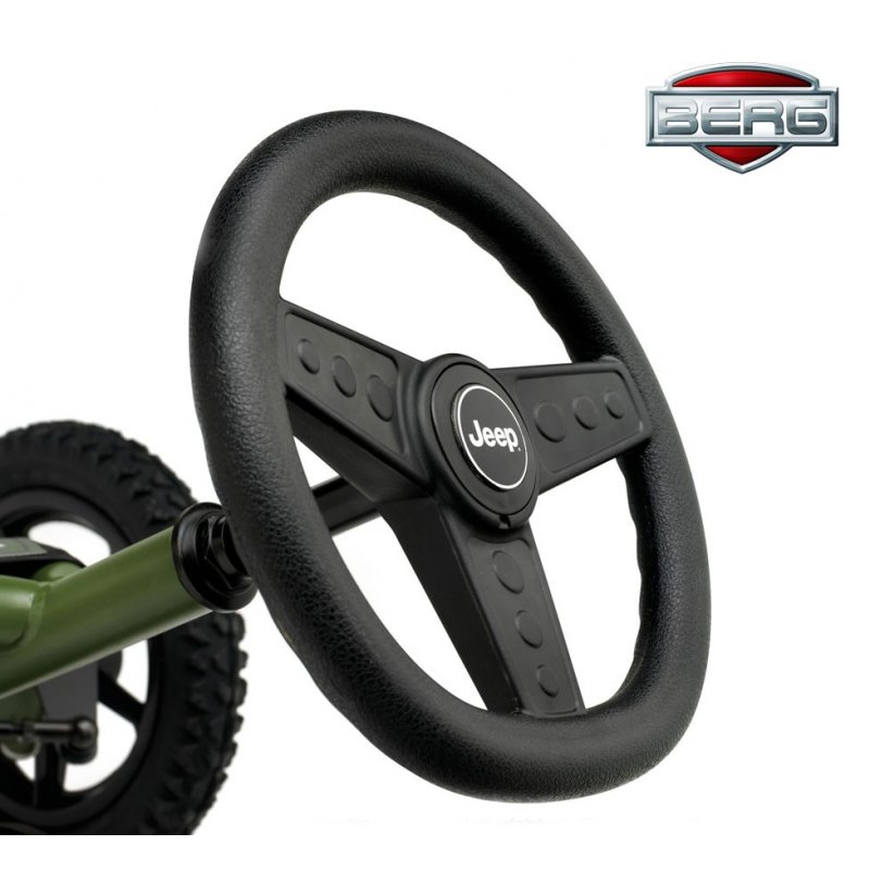 Gokart na pedały Jeep® Junior firmy Berg to solidny pojazd, który zapewni Waszym dzieciom niezapomnianą zabawę! Gokart wyposażony jest w regulowaną kierownicę i regulowane siedzisko..
