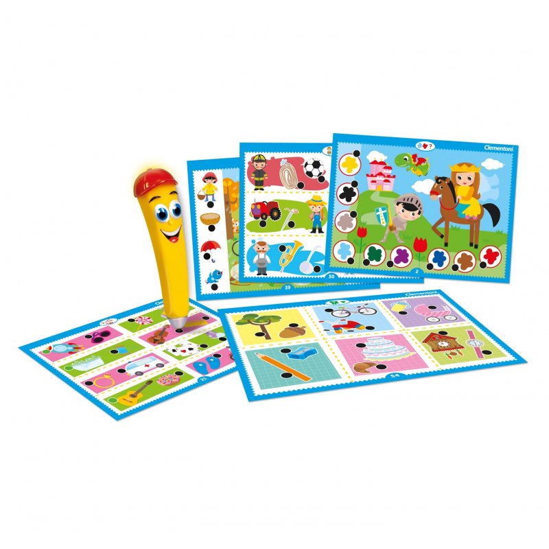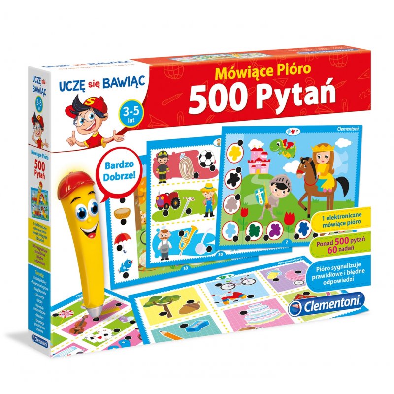 Mówiące pióro 500 zadań - Gra edukacyjna zaprojektowana przez renomowanego producenta zabawek, włoską firmę Clementoni. Zestaw edukacyjny zawiera 60 zadań i 500 pytań dotyczących wielu dziedzin życia i rozwija w zabawny sposób umiejętności logiczne, mnemotechniczne, numeryczne, manualne oraz zmysł obserwacji. Magiczne pióro towarzyszy Twojemu dziecku podczas zabawy i sygnalizuje prawidłowe oraz błędne odpowiedzi.