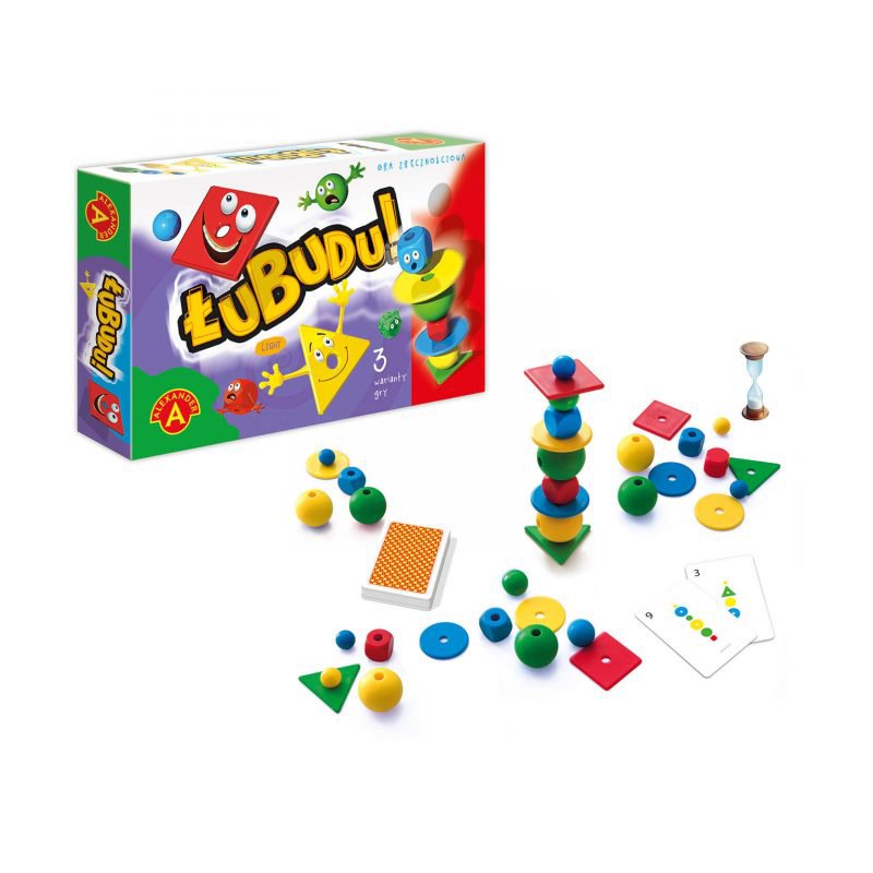 ŁUBUDU to gra zręcznościowa w 3 wariantach. Zadaniem jej uczestników jest zbudowanie wieży z plastikowych elementów o różnym kształcie i wielkości. W zależności od wariantu gry wygra ten, kto najszybciej ułoży określony wzór wieży lub kto zbuduje najwyższą wieżę. Gra jest niezwykle emocjonująca, uczy cierpliwości, precyzji, zręczności i opanowania.