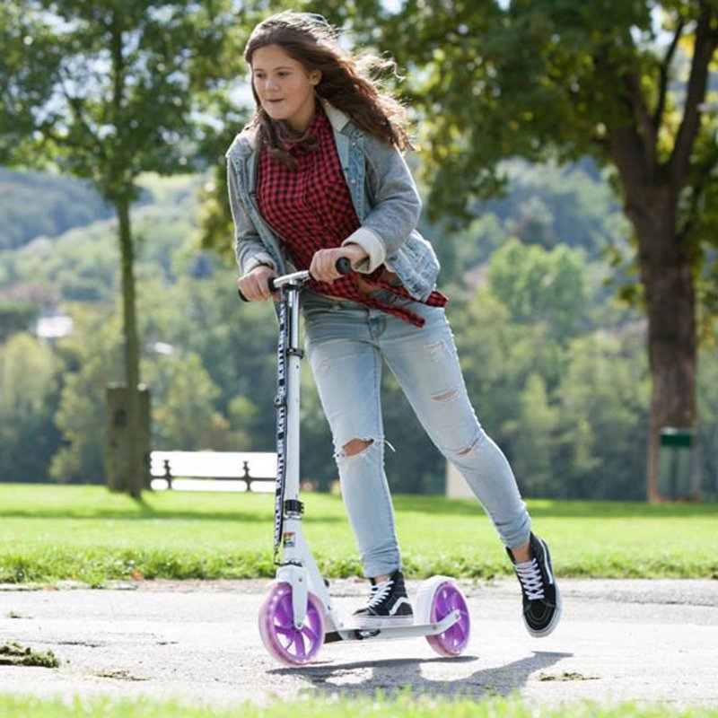 Hulajnoga jest bardzo mocna i solidna, z obciążeniem maksymalnym do 100 kg, co oznacza, że korzystać z niej mogą nie tylko dzieci, ale też dorośli!