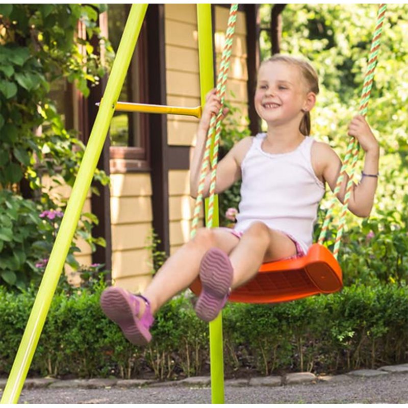 Dodatkowo cały stelaż wykonany jest z rur stalowych pokrytych powłoką poliestrową, co gwarantuje że huśtawka jest mocna i wytrzymała.