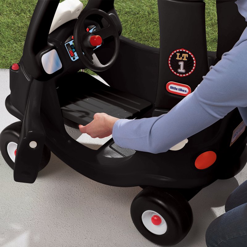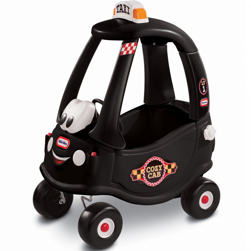 Jeździk Cozy Coupe Taxi w kolorze czarnym został wyposażony w kierownicę z klaksonem. Nisko położony środek ciężkości pozwala na bezpieczną i pewniejszą naukę pierwszych „kroków” na jeździku. Dodatkowo przednie kółka obracają się o 360º dla wygodniejszego prowadzenia i skręcania.