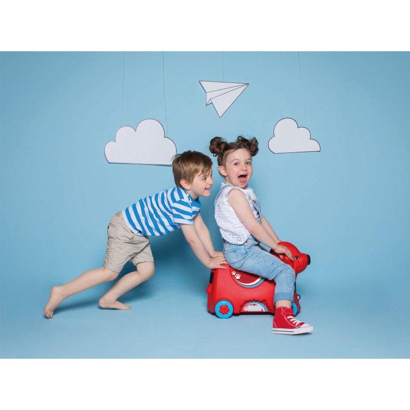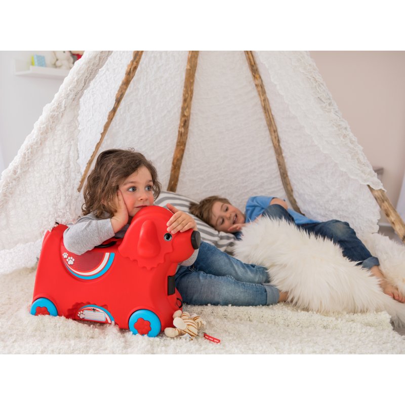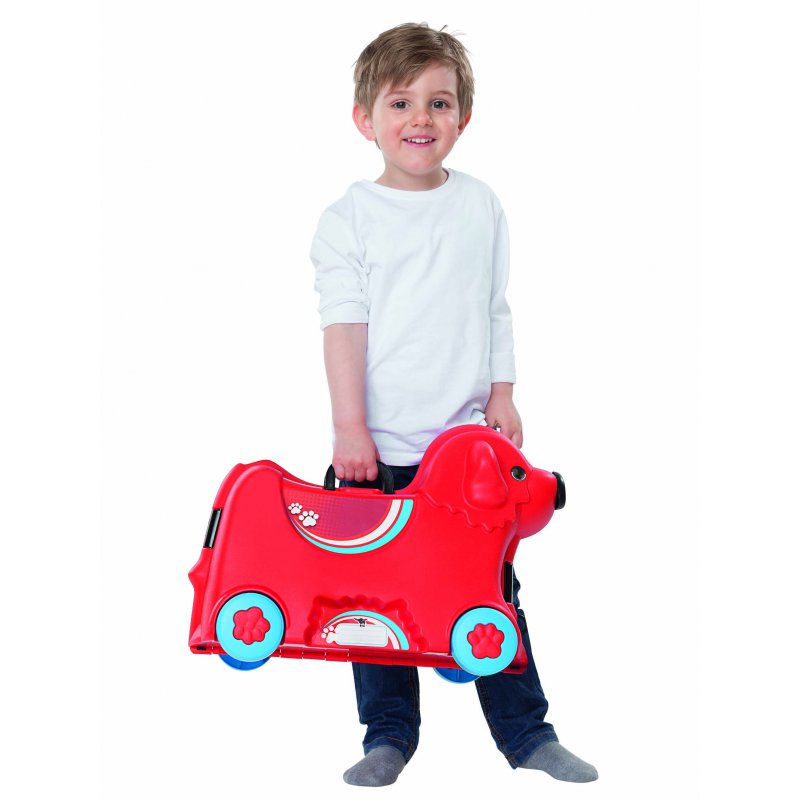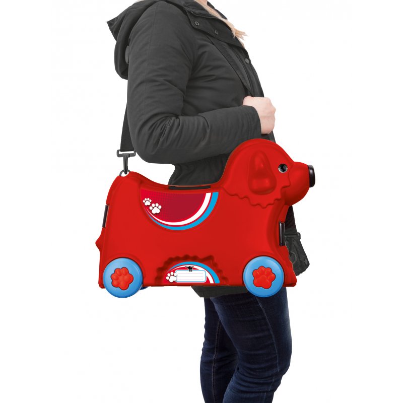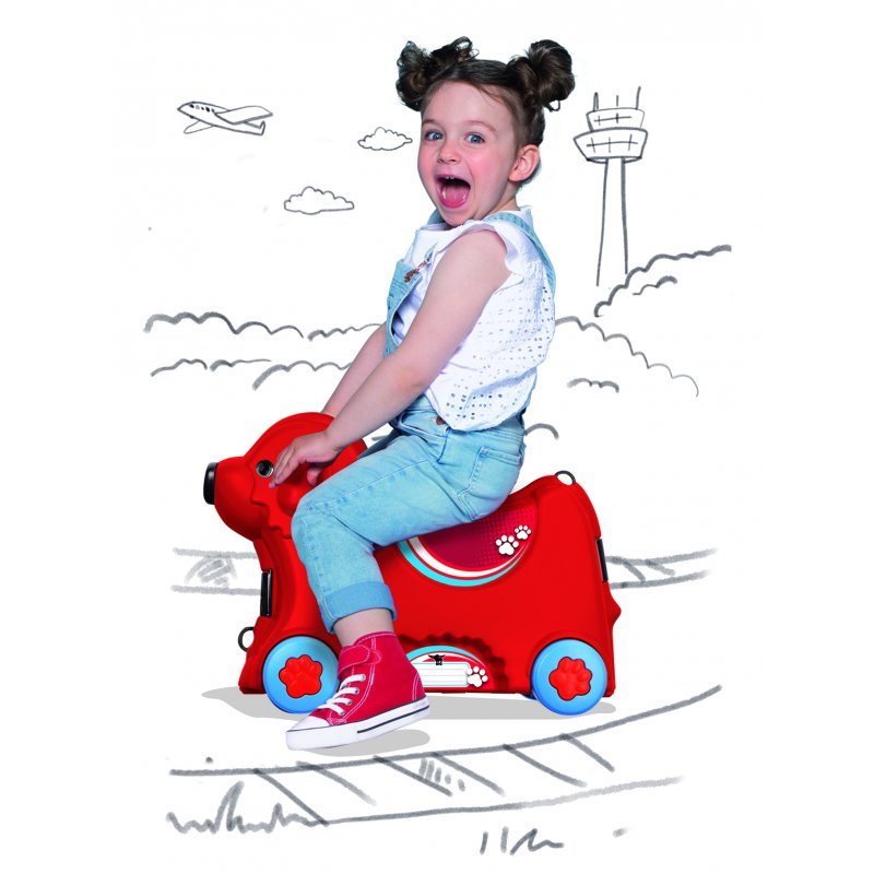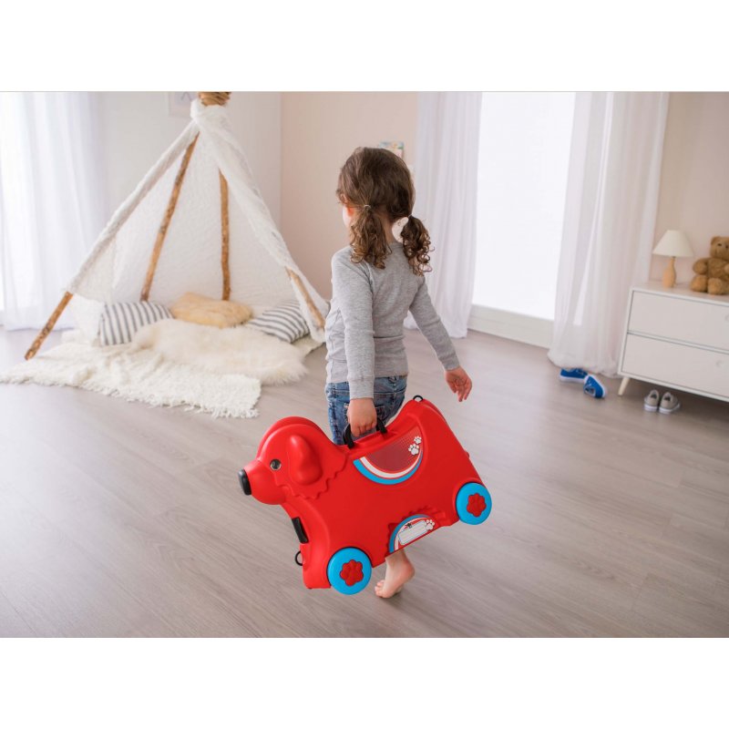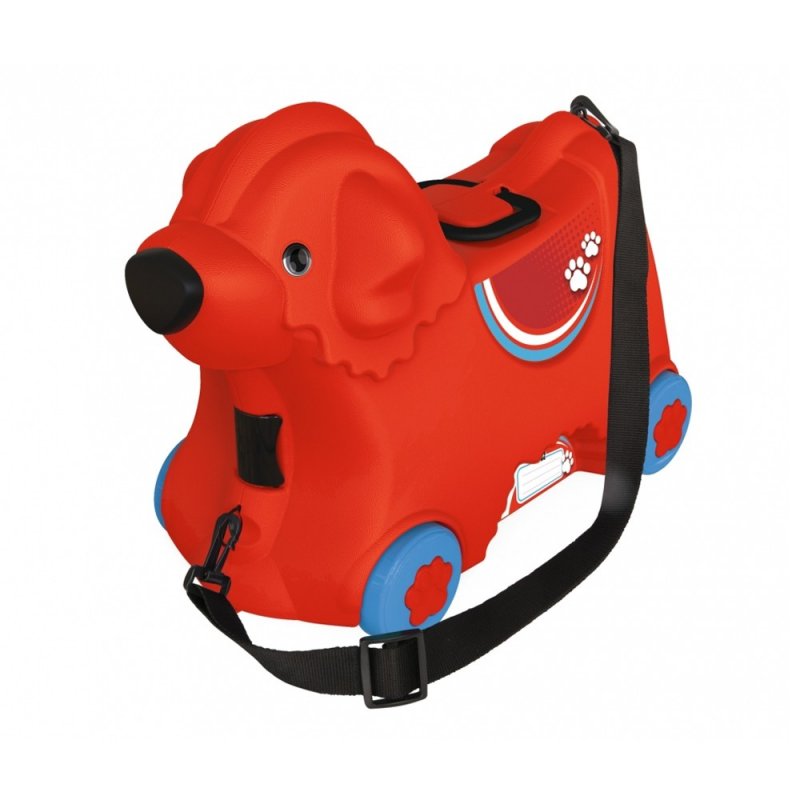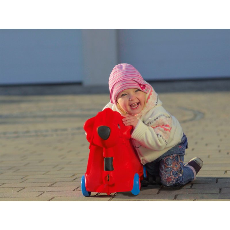 Jeżdżąca walizka Big Bobby Trolley będzie towarzyszyć małym podróżnikom niezależnie od miejsca podróży. To świetny produkt, który jest jednocześnie walizką i jeździkiem w kształcie pieska! W walizce z pewnością zmieszczą się w niej wszystkie niezbędne przedmioty potrzebne w podróży. Poza szerokimi zatrzaskami z przodu i z tyłu Big Bobby Trolley wyposażony jest w tajny zamek w postaci nosa, który po obróceniu otwiera walizkę. Przenoszenie i ciągnięcie walizki jest niezwykle łatwe dzięki lekkiemu, wytrzymałemu i regulowanemu pasowi. Ten uroczy piesek wyposażony jest w cztery solidne kółka oraz składany uchwyt w miejscu siedziska. Szeroki rozstaw kółek zapewnia bezpieczeństwo i stabilność podczas jazdy. Całość wykonana jest z najwyższej jakości tworzywa.