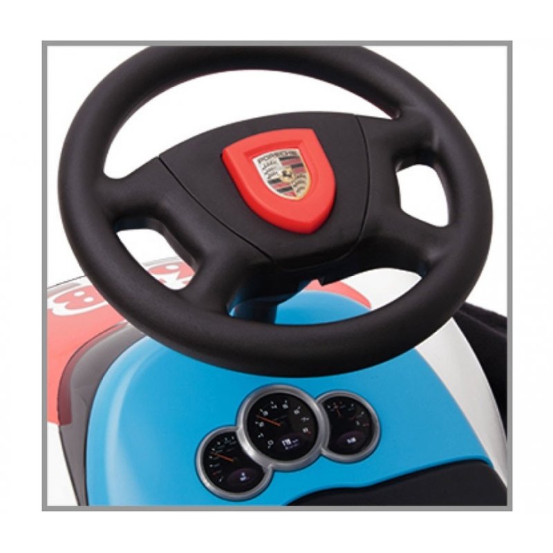 Bobby Porsche - nowość od firmy Big. Wysoka jakość użytych materiałów, stabilne szerokie podwozie, antypoślizgowe ciche koła oraz sportowa kierownica pozwalająca w prosty sposób kierować pojazdem, zapewniają dziecku fantastyczną i bezpieczną zabawę. Kształt pojazdu idealnie dopasowuje się do ergonomii dziecka. Szerokie gumowane koła oraz skrętne koła zapewniają dobrą przyczepność do podłoża i gwarantują cichą jazdę. Wygodną jazdę zapewni piankowe siedzenie. Ergonomiczna kierownica z klaksonem zawiera oryginalne logo marki Porsche. Wysokiej jakości realistycznie odzwierciedlone lampy z przodu oraz z tyłu pojazdu dopełniają ekstrawagancki projekt samochodu sportowego dla dzieci od 18 miesiąca. Bobby Porsche wykonany został z trwałych i przyjaznych dla środowiska tworzyw.