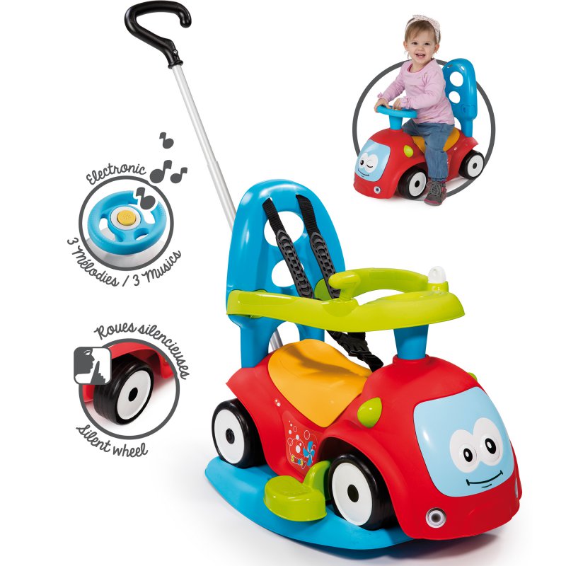 Jeździk, bujak 4 w 1 cenionego producenta zabawek dla dzieci francuską firmę Smoby to idealny pojazd zarówno w domu jak i na dworze. Kierownica dźwiękowa z 3 melodiami urozmaici zabawę a praktyczny schowek pod siedziskiem będzie idealnym rozwiązaniem na wszystkie niezbędne skarby jakie maluch koniecznie musi zabrać z sobą na spacer..