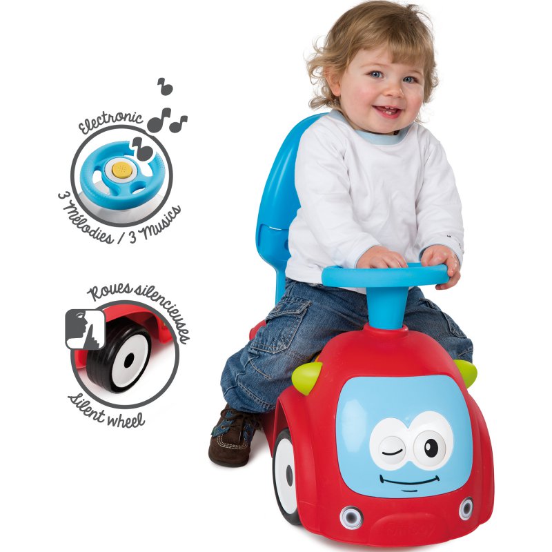Smoby bujak jeździk to idealny pojazd zarówno w domu jak i na dworze. Kierownica dźwiękowa z 3 melodiami urozmaici zabawę a praktyczny schowek pod siedziskiem będzie idealnym rozwiązaniem na wszystkie niezbędne skarby jakie maluch koniecznie musi zabrać z sobą na spacer..