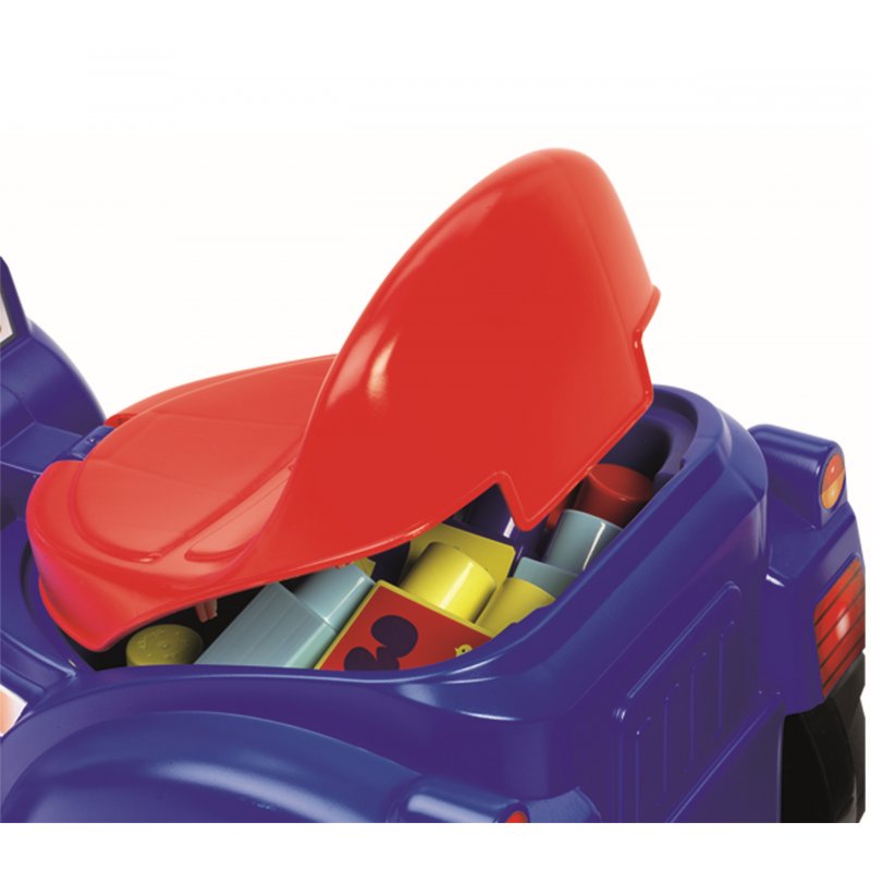 Rewelacyjny jeździk od firmy Ecoiffier sprawdzi się idealnie jako pierwszy pojazd dla dzieci w wieku od 12 miesiąca życia. Na przodzie jeździka znajduje się radosna buźka, a pod siedziskiem ukryty jest specjalny schowek. Dodatkowo producent wyposażył pojazd w odczepianą przyczepkę z podstawą do układania klocków oraz dołączył do kompletu 8 dużych klocków, które uatrakcyjnią zabawę.