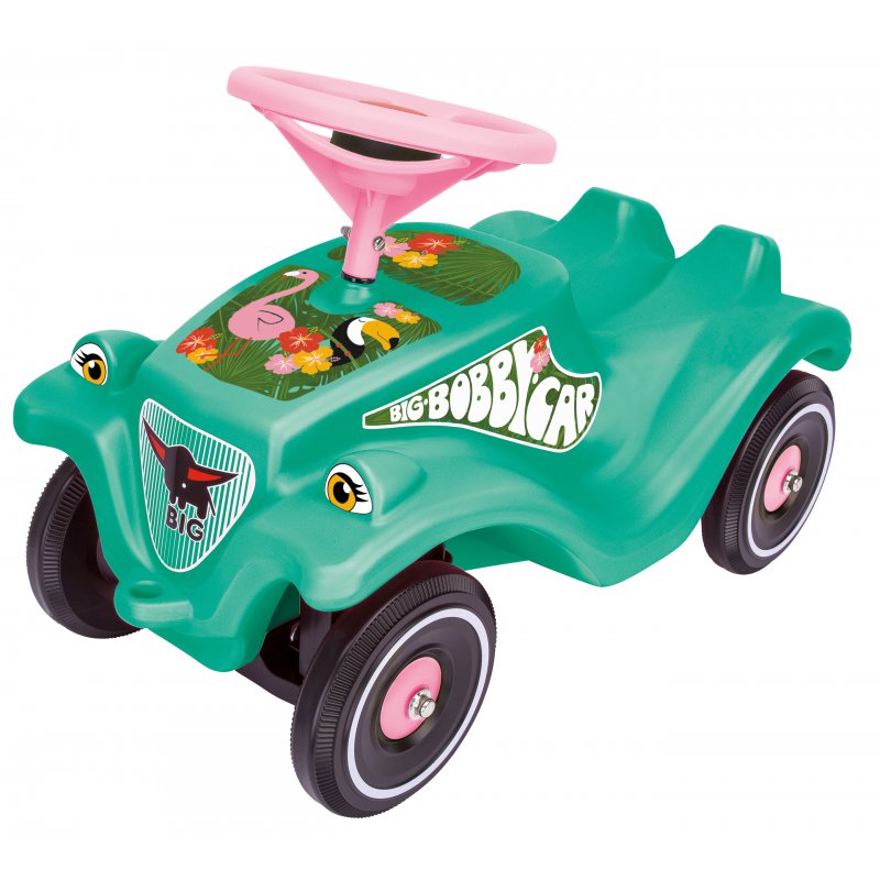 Jeździk dla dzieci od 12-go miesiąca Bobby Car Classic Tropic Flamingo zaprojektowany przez znaną markę niemiecką firmę Big.Wyposażony w klakson samochód świetnie sprawdzi się w przedszkolu dzięki wytrzymałej konstrukcji.