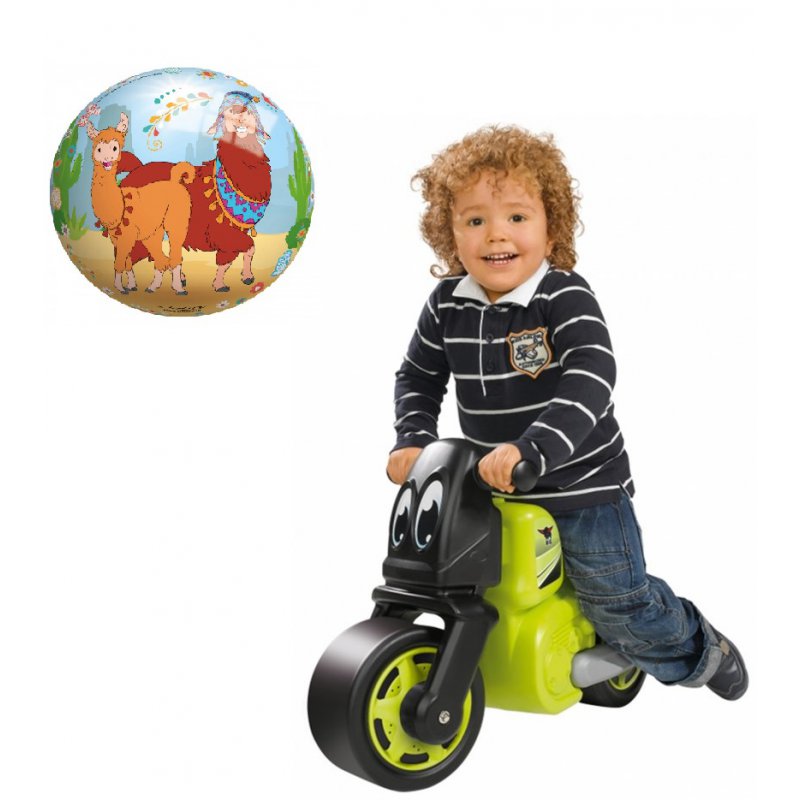 Wspaniały 2-kołowy pojazd, o jakim marzy każdy mały motocyklista. Posiada duże, szerokie koła oraz skrętne przednie koło z ogranicznikiem skrętu, co zapewnia bezpieczeństwo, stabilność i łatwe utrzymanie równowagi. W zestawie fantastyczna perłowa piłka od firmy John a na niej wizerunki Lam.